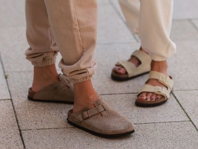 Birkenstocks are known for their anatomical, cork-based footbeds designed for comfort and support, available in a wide range of styles, including sandals, clogs, and sneakers. They have a deep heel cup, arch supports, and a toe grip, which help mold to the foot over time for a personalized fit.